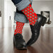 - Repeated face pattern wraps completely around the socks
